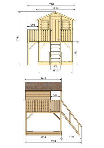 ↔ Wymiary całkowite domku z huśtawkami (bez ślizgu) 520 x 345 x 278 cm (długość x szerokość x wysokość),