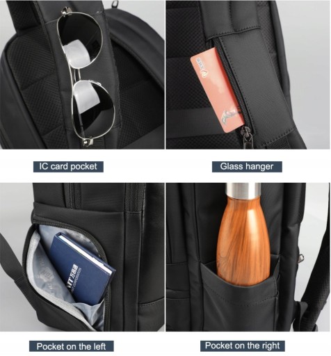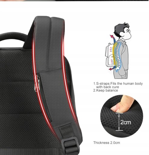 Prosty i elegancki plecak na laptopa marki TIGERNU o symbolu T-B3668. Wykonany jest z wodoodpornego i wytrzymałego materiału – nylonu w kolorze czarnym ze skórzaną wstawką na przedniej kieszeni. W głównej komorze znajduje się miękka kieszeń na laptopa w rozmiarze do 16,4" (zabezpieczona elastycznymi paskami), kilka przydatnych kieszonek np. na powerbank, portfel czy telefon, w tym jedna zapinana na zamek oraz sporo miejsca na zapakowanie potrzebnych rzeczy. Z przodu plecaka znajduje się kieszeń na podręczne rzeczy z wieloma przegródkami, więc z powodzeniem świetnie uporządkujesz tutaj swoje drobiazgi. Umieszczono tutaj również odblaskowy pasek dla poprawy bezpieczeństwa po zmroku. Z tyłu plecaka schowana jest kieszeń z systemem RFID zabezpieczającą Twój portfel lub telefon przed sczytaniem danych z karty kredytowej. Tył plecaka i szelki dodatkowo wyłożono ergonomicznymi, oddychającymi gąbkami, dzięki czemu jest on wygodny przy dłuższym noszeniu. Szelki plecaka są płaskie, szerokie i uszyte w kształcie litery S, dzięki czemu plecak lepiej leży na ramionach, a ciężar jest rozłożony równomiernie. Posiadają solidne klamry do regulacji, nylonowe wytrzymałe paski z plastikowymi zakończeniami ułatwiającymi szybką regulację długości oraz małe podręczne kieszonki: na okulary słoneczne i kartę (zapinana na zamek). Po bokach plecaka znajdują się dwie kieszenie, jedna elastyczna na napój lub parasolkę, a druga zapinana na zamek. Plecak wyposażony jest w zewnętrzne gniazdo USB, dzięki czemu nie ma konieczności wyciągania power banka z plecaka, aby naładować telefon lub inne przenośne urządzenie. Powyżej projektanci umieścili również specjalny otwór na słuchawki. Na tylnej ścianie plecaka znajduje się solidny nylonowy pas, dzięki któremu można założyć plecak na rączkę torby lotniczej i będzie się on stabilnie trzymał. Plecak TIGERNU o symbolu T-B3668 to idealna propozycja do pracy lub na co dzień. Dzięki nowoczesnemu i prostemu designowi jest elegancki i doskonale komponuje się z oficjalnym ubiorem, jak również świetnie sprawdzi się na wycieczce rowerowej.