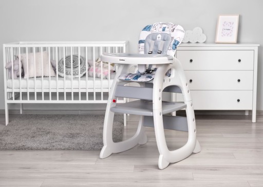 - przekształcenie w zestaw krzesełko + stoliczek, sprawdza się podczas w zabawy oraz w trakcie nauki samodzielnego jedzenia
