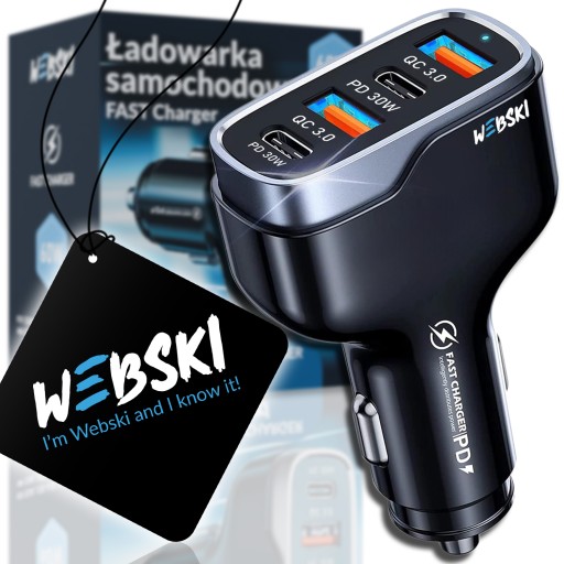 Oryginalna ładowarka samochodowa Webski idealna do ładowania wszystkich urządzeń elektronicznych takich jak telefon, tablet, kamera cofania, nawigacje, a nawet laptop. Wykonana z wysokiej jakości materiałów i zaprojektowana tak, aby idealnie wpasować się w wygląd wnętrza Twojego auta.