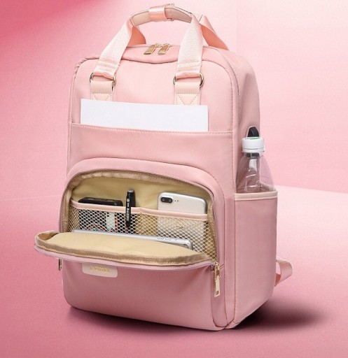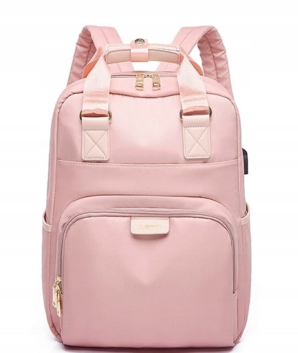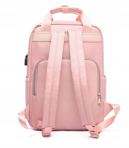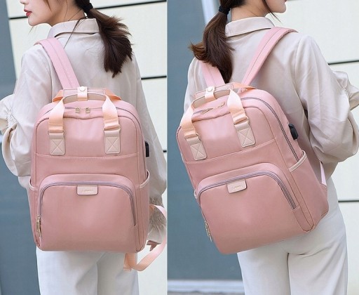 Elegancki, damski plecak na laptopa STELLA marki JQ. Wykonany został z matowego materiału ze skórzanymi wstawkami i zamkami w złotym kolorze. Materiał jest jednocześnie wytrzymały i wodoodporny. W głównej komorze plecaka znajdują się kieszonki na akcesoria, zapinana na pasek z rzepem kieszeń na laptopa w rozmiarze do 15,6 oraz sporo miejsca na zapakowanie rzeczy. Po bokach plecaka umieszczono kieszenie na napój lub parasolkę. Z tyłu, pod szelkami, znajduje się duża kieszeń, w której możesz bezpiecznie przechowywać cenne rzeczy np. portfel, telefon lub tablet. Z przodu plecaka umieszczono dużą kieszeń na podręczne rzeczy zapinaną na zamek, a w jej środku dwie siatkowe kieszonki na drobiazgi. Powyżej pod rantem materiału, schowana jest zapinana na rzep szeroka kieszeń, do której możesz schować kalendarz, gazetę, ulubioną książkę lub tablet. Plecak posiada miękkie, regulowane szelki oraz podwójny uchwyt spinany skórzanym paskiem z napą, aby wygodnie przenosić go w ręce. Z boku plecaka umieszczono zewnętrzne złącze USB, dzięki czemu nie ma konieczności wyciągania power banka z plecaka, aby naładować telefon lub inne przenośne urządzenie. Plecak STELLA do produkt skierowany do nowoczesnych kobiet, które cenią sobie jakość i elegancję.
