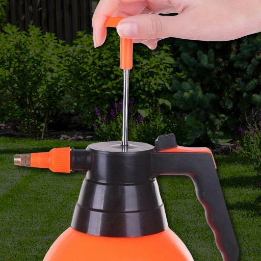 Opryskiwacz wyposażony jest w ręczną pompkę ciśnieniową, która pozwala na utrzymanie stałego, regulowanego ciśnienia wewnątrz zbiornika.