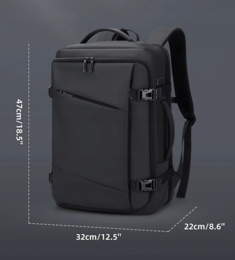 Plecak może służyć jako bagaż podręczny, gdyż jego wymiary nie przekraczają dopuszczalnych, ustalonych przez większość przewoźników.