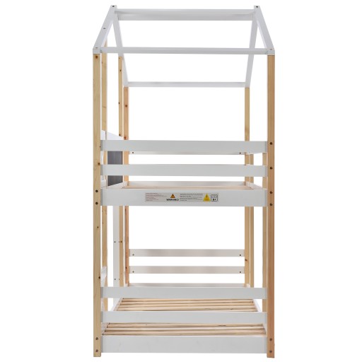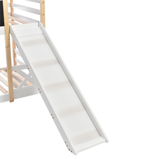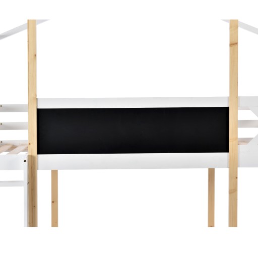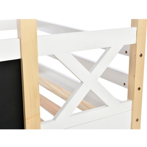 Łóżko dziecięce Domek na drzewie ze zjeżdżalnią i drabinką 90 x 200 cm, łóżko na poddaszu dla dzieci - 2x ramy z listew - naturalny i biały