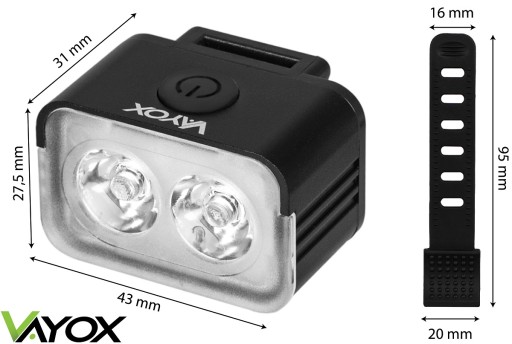 Lampka VA0153 VAYOX wyposażona jest w dwie diody LED, które emitują biały, zimny strumień świetlny o faktycznej mocy 300 lumenów. Soczewki diod zostały zaprojektowane w taki sposób aby nie razić kierowców jadących z naprzeciwka