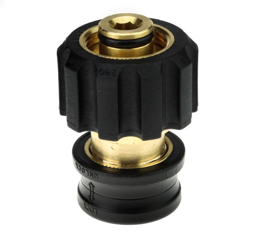 Dzięki zastosowaniu szybkozłącza znacznie skrócimy czas zmiany akcesoriów, gdyż wystarczy jedno kliknięcie i mamy pewność, że połączenie będzie stabilne i szczelne. Szybkozłącze posiada mocowanie na gwint M22x1,5mm do pistoletu.