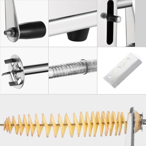 Maszynka ręczna przeznaczona do przygotowania zakręconych, rozpowszechnianych na całym świecie jako ziemniak wiosenny lub skręcony ziemniak. Sprawdź także przy przyrządzaniu innych warzywnych przekąsek w formacie spirali.