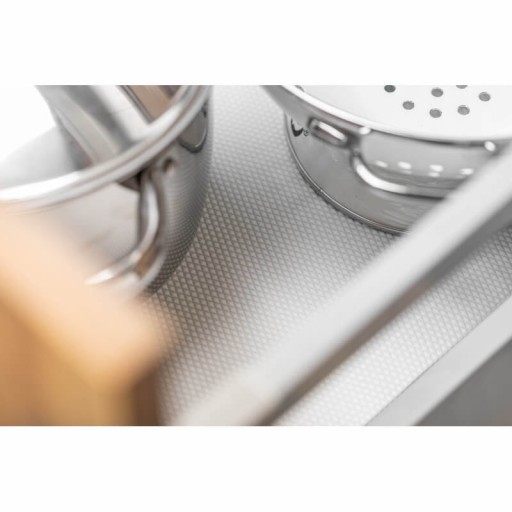 Mata antypoślizgowa AXISPACE znajdzie zastosowanie w różnego rodzaju szafkach i szufladach. Szerokość maty wynosi 480 mm a jej długość 5000 mm, ale istnieje możliwość docięcia jej na dowolny wymiar. Powierzchnia z wypustkami zapobiega przesuwaniu się przedmiotów.