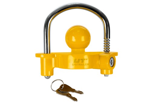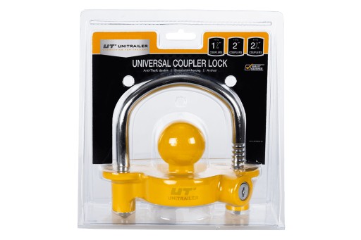 Zabezpieczenie wykonane z odlewu, malowane proszkowo. Kula o średnicy 50 mm. Pałąk zamykający dodatkowo wzmacniany. Na przodzie produktu logo Unitrailer. Każde zabezpieczenie posiada plastikowe opakowanie z logo.