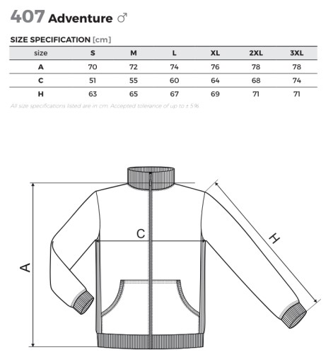Bluza męska z NADRUKIEM dowolnego logo na lewej piersi oraz na plecach Malfini ADVENTURE 407