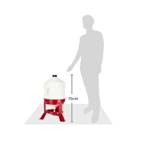 Pojemność poidła to aż 30 L. W zbiorniku został wytłoczony uchwyt do przenoszenia. Poidło posiada zakrętkę, która chroni wnętrze zbiornika przed zabrudzeniem i pomaga utrzymać świeżość wody. Na rurce w korycie znajduje się plastikowy zawór który można zamknąć w czasie napełniania zbiornika. Poidło może być także wykorzystywane do pojenia innych gatunków ptactwa jak kury czy kaczki.