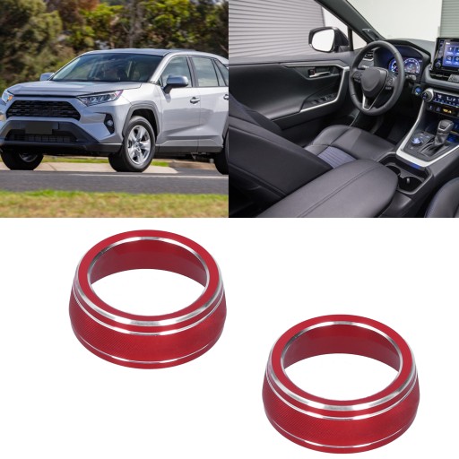 2 szt. Pokrętło przełącznika audio klimatyzacji Pierścienie Wykończenia Czerwona dekoracja Pasuje do RAV4 2020