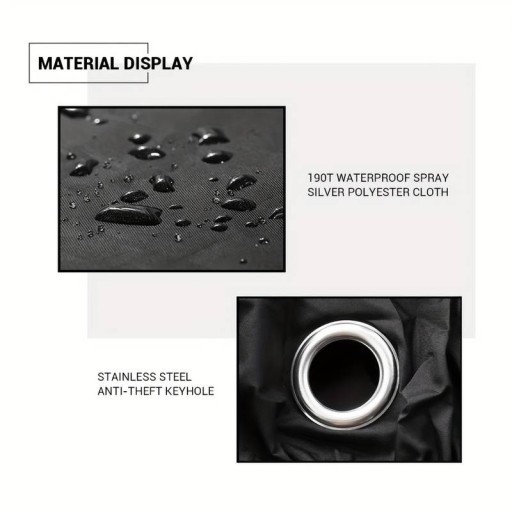 - Regulowany Pasek, Gumowe Ściągacze: Pasek z klamrą pozwala bezpiecznie umocować pokrowiec, nawet podczas silnych wiatrów.