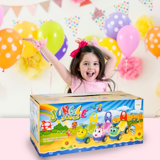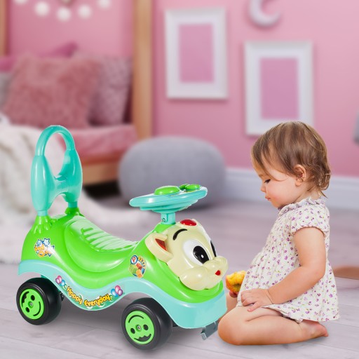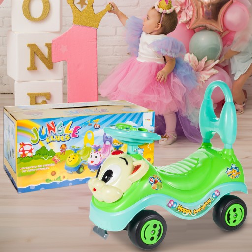 - Stymulacja zmysłów: Różnorodne kształty, kolory i dźwięki jeździka pchacza stymulują zmysły dziecka, wspomagając jego rozwój sensoryczny.