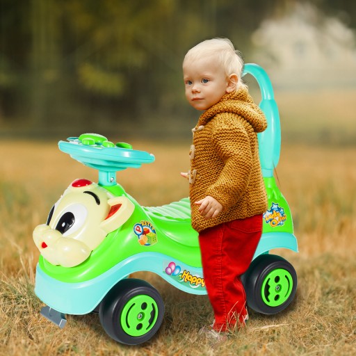 JEŹDZIK PCHACZ CHODZIK KOTEK Z OPARCIEM DLA DZIECI DZWIĘKI KLAKSON ZIELONY