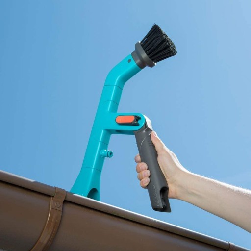 Przyrząd do czyszczenia rynien dachowych GARDENA combisystem jest optymalnie przystosowany do łatwego czyszczenia rynien. Sprężyste włosie z jednej strony i dwie solidne skrobaczki z wytrzymałego tworzywa sztucznego z drugiej umożliwiają skuteczne czyszczenie. Uchwyt zapewnia prostą obsługę nawet bez trzonka. Do czyszczenia rynien można także użyć wody dzięki zintegrowanemu podłączeniu Original GARDENA System, które umożliwia proste podłączenie węża ogrodowego. Aby bez problemu sięgnąć do rynny, kąt pracy można ustawić indywidualnie za pomocą zapięcia zatrzaskowego. Przyrząd do czyszczenia rynien dachowych jest kompatybilny ze wszystkimi trzonkami GARDENA combisystem, ale w przypadku pracy na wysokości ok. 5 m zaleca się stosowanie trzonków teleskopowych.