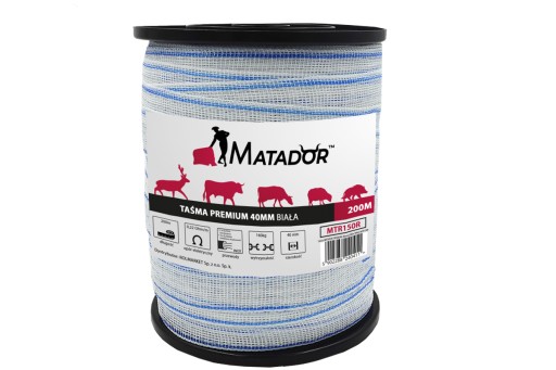 Taśma Matador Premium do ogrodzeń elektrycznych dla koni 40mm x 200m,