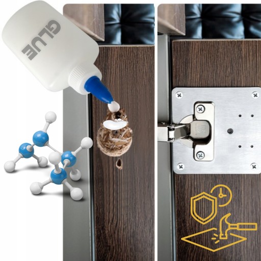 Klej jest łatwy w użyciu. Klej wypełni szczeliny dzięki czemu wkręt będzie miał dodatkowe oparcie i zapewni dużo większą stabilność zawiasu.
