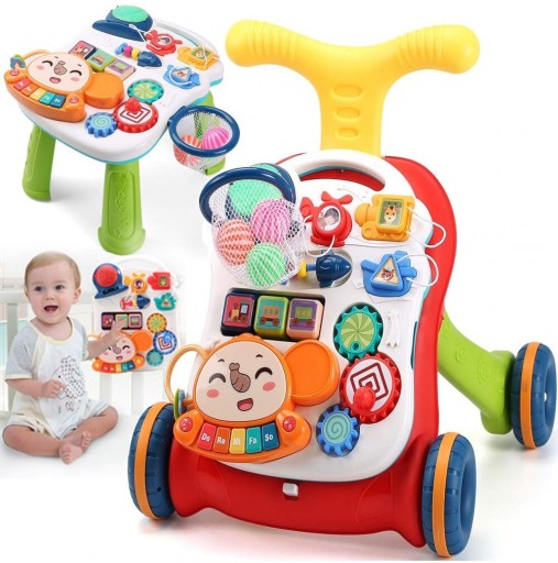 ✅ CHODZIK PCHACZ STOLIK EDUKACYJNY INTERAKTYWNY PANEL KOSZY 5W1 DLA DZIECI