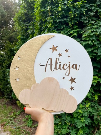 Urocza lampka nocna z imieniem dziecka z księżycem i chmurką sprawi, że pokoik dziecięcy będzie jeszcze bardziej przytulny. Pięknie prezentuje się na ścianie czy stojąc na komodzie. W ciągu dnia lampka z imieniem jest przepięknym dekorem w pokoju Malucha. W nocy umili wieczory Twojego dziecka, a ciepłe światło sprawi, że usypianie i wyciszanie się przed snem będzie jeszcze bardziej przyjemne i prostsze.