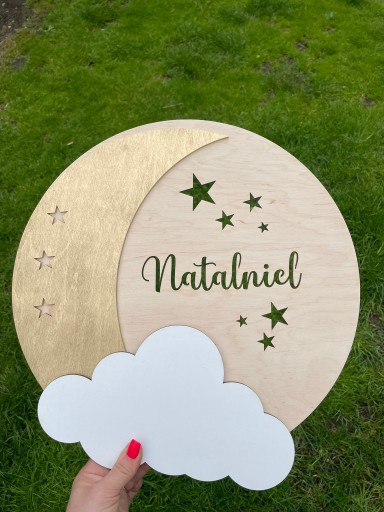 W przypadku braku podania kolorów realizujemy lampkę w wersji kolorystycznej ze zdjęcia. Jeżeli chcesz, aby np. księżyc był srebrny, front drewniany, a chmurka biała - wystarczy, że uzupełnisz przy zakupie pole uwagi do zakupu taką informacją.
