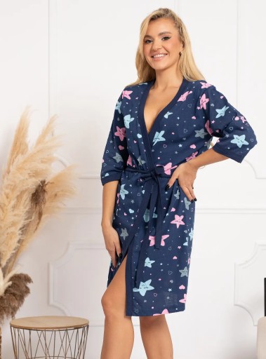 Szlafrok polecany dla kobiet . Idealnie dopasowuje się do sylwetki dzięki wiązaniu na zakładkę i mieści ciążowy brzuszek. Materiał z którego został wykonany jest delikatny i nie podrażnia .Bezpieczny dla matki i dziecka. Idealnie nadaje się na okres karmienia dzidziusia piersią. Bardzo wygodny i komfortowy w użytkowaniu.