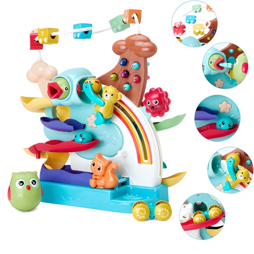 ✔️ Tor wyścigowy z kulkami: dziecko może wykorzystać zestaw jako tor wyścigowy, pozwalając kulkom na zjeżdżanie po ścieżkach, co rozwija koordynację ruchową i umiejętność śledzenia obiektu wzrokiem.