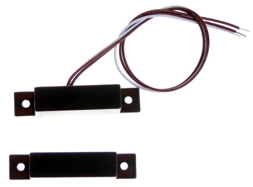 Czujnik kontaktronowy (magnetyczny) boczny, przeznaczony do stosowania w systemach alarmowych.
