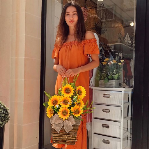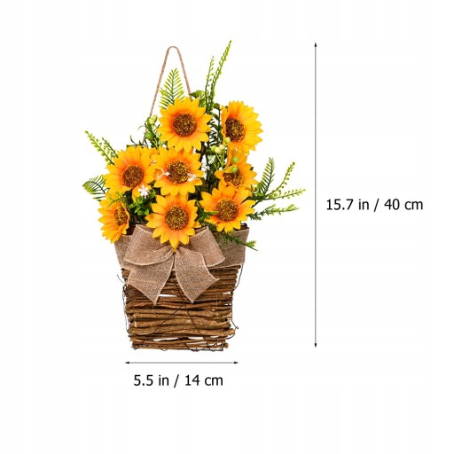 Łatwy do zawieszenia na drzewie, drzwiach, ścianie, łóżku lub w dowolnym miejscu, które chcesz udekorować. Wyjątkowy i wyrafinowany design sprawia, że ten sztuczny wieniec słonecznikowy wygląda tak uroczo i pięknie. Możesz dodać do niego inne elementy dekoracyjne, aby stworzyć swój własny wieniec, zapewniając większą elastyczność.