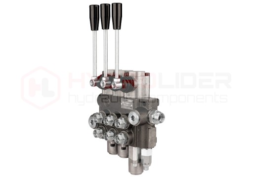 - Rozdzielacz 3-sekcyjny 40L/min z pozycjonowaniem sprężynowym i jedną sekcją pływającą