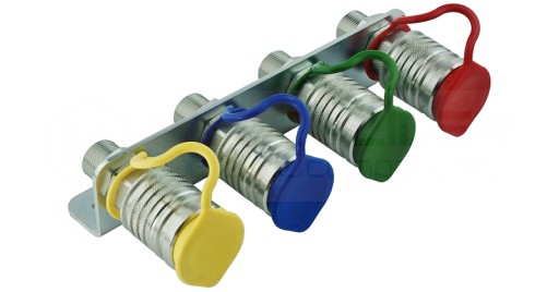 - Sześć szybkozłączy EURO ISO ze wspornikiem do zamocowania na słupku od ładowacza TUR