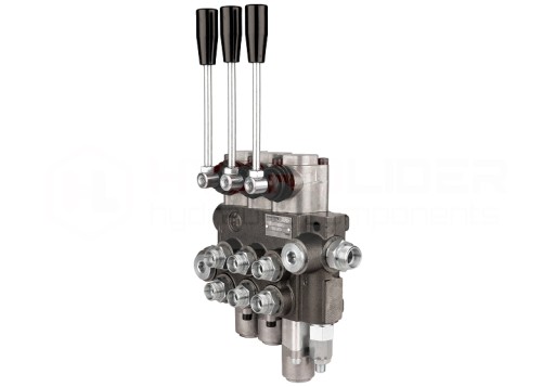 - Rozdzielacz hydrauliczny 3-sekcyjny 40L/min z jedną sekcją pływającą i pozycjonowaniem sprężynowym.