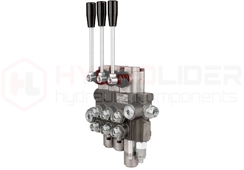 - Rozdzielacz hydrauliczny 3-sekcyjny 40 l/min z jedną sekcją pływającą i pozycjonowaniem sprężynowym.