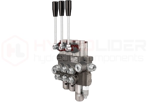 - Rozdzielacz hydrauliczny 3-sekcyjny 40L/min z jedną sekcją pływającą i pozycjonowaniem sprężynowym.