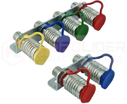 - Cztery szybkozłącza EURO ISO ze wspornikiem do zamocowania na słupku od ładowacza TUR