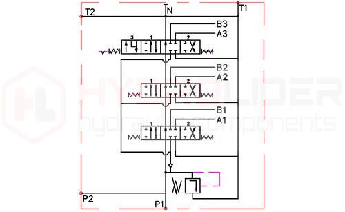 - Ciśnienie: P: ≤ 250 bar ; T: ≤ 50 bar ; A i B: ≤ 300 bar
