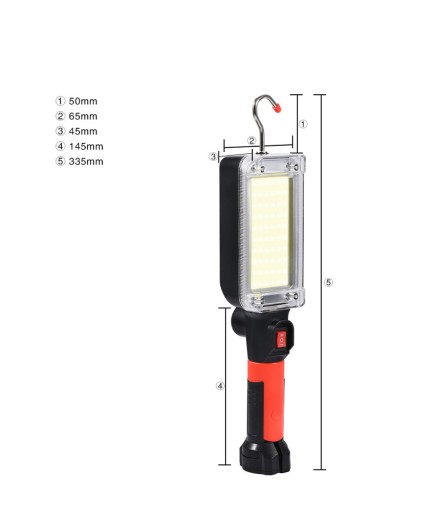 Bezprzewodowa i uniwersalna lampa do wykorzystania w warsztacie, garderobie czy piwnicy. Wykonanie z lekkiego i praktycznego przechowywania. Lampa ma możliwość powieszenia na zamontowanym w niej haku, zawieszeniu na magnezie lub 2 dolnych oraz na mocnym klipsie, który jest ukryty u podstaw. Mocna dioda LED COB oświetlenie jasne światło. Jest zasilany ogniwami 18650. W wykazie jest kabel USB do ładowania.