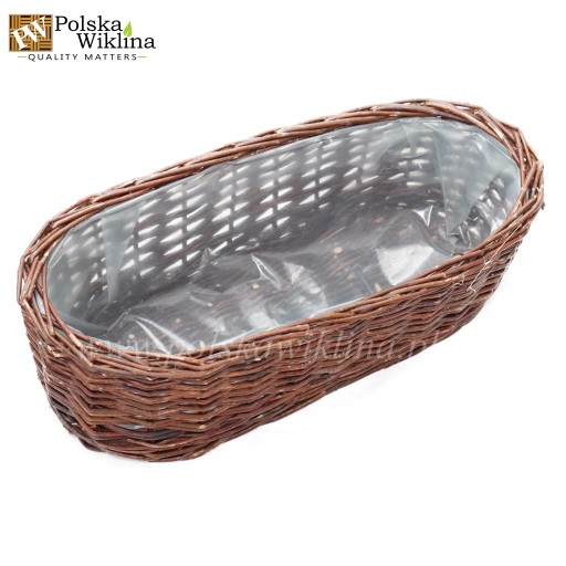 DONICZKA WIKLINOWA PODŁUŻNA KOSZ Z FOLIĄ OSŁONKA NA KWIATY 50 CM CIEMNA