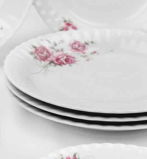 RÓŻOWE RÓŻE Serwis obiadowy 18 el dla 6 osób