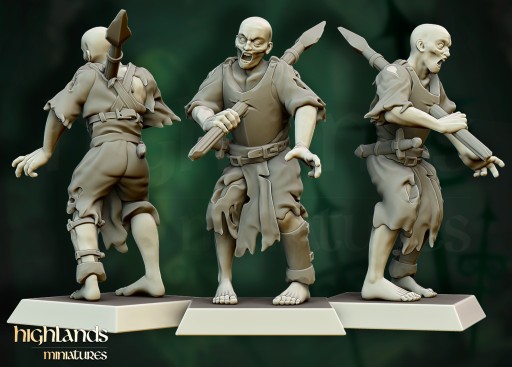 Przedmiotem oferty jest zestaw 20 modeli Zombie Horde od Highlands Miniatures, wydrukowanych na drukarce 3D w technologii SLA.