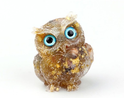 【Kreatywny projekt】 Ta statua sowy jest tak żywa i wyjątkowa. Są wykonane ręcznie z przezroczystej żywicy w kształcie sowy i wypełnione naturalnymi kamieniami szlachetnymi. Kamienie szlachetne można zobaczyć na spodzie posągu.