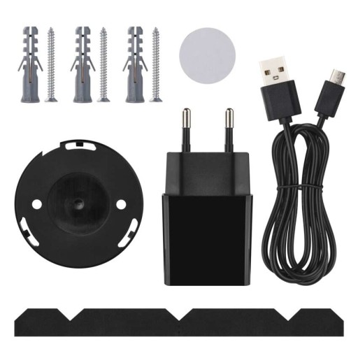 - zawartość opakowania: 1× kamerę, 1× zasilacz, 1× kabel USB, 1× uchwyt, 1× taśma klejąca, 1× śruby, 1× taśma ochronna, 1× instrukcja obsługi