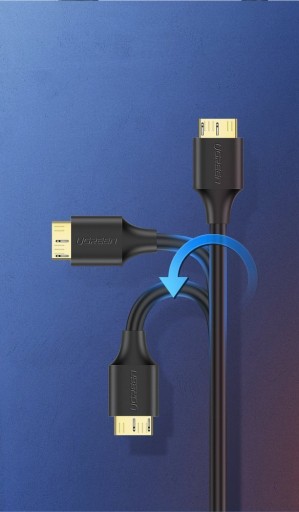 Kabel UGREEN w standardzie microUSB 3.0. Pozwala na szybką transmisję danych do 5Gb/s pomiędzy urządzeniem (np. dyskiem zewnętrznym) a komputerem oraz wydajne zasilanie urządzenia. Jego uniwersalne końcówki pozwalają na podłączenie do m.in. telewizora, notebooka, kamery czy smartfonu.