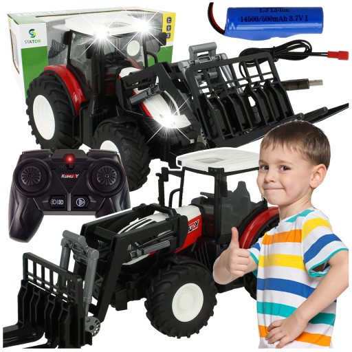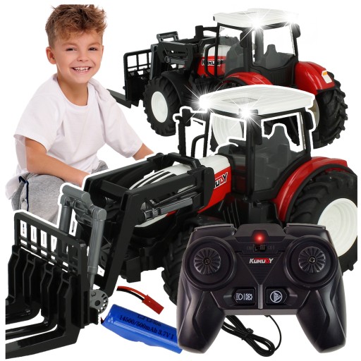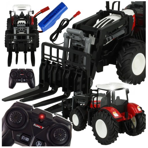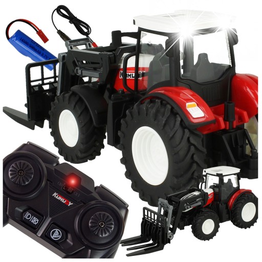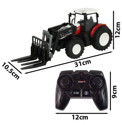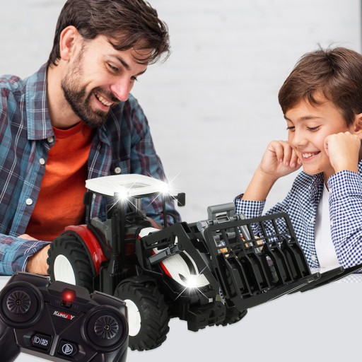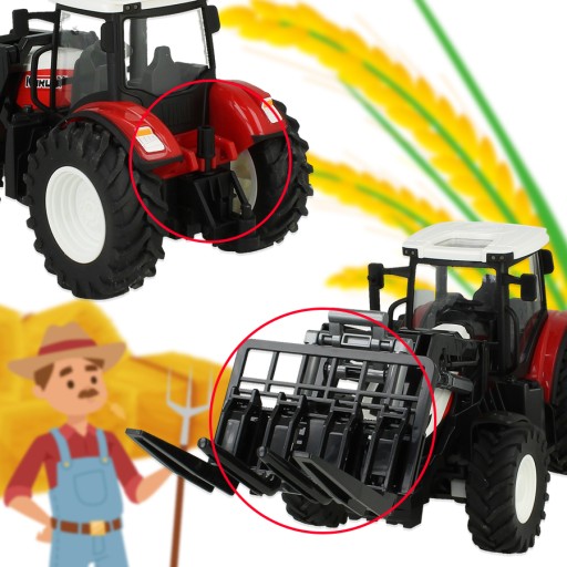 Największą atrakcją zdalnie sterowanego traktora jest ruchomy widlak, który odwzorowuje realne sytuacje na farmie. Podnośnik z widlakiem jest ruchomy i można go ręcznie podnosić i opuszczać.