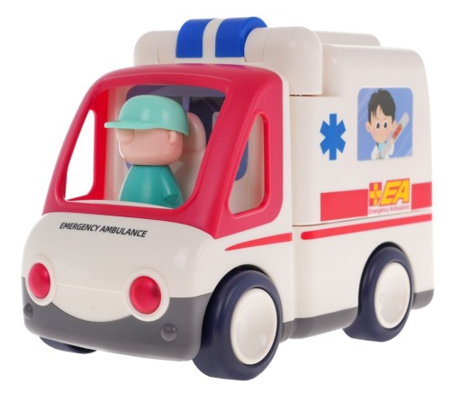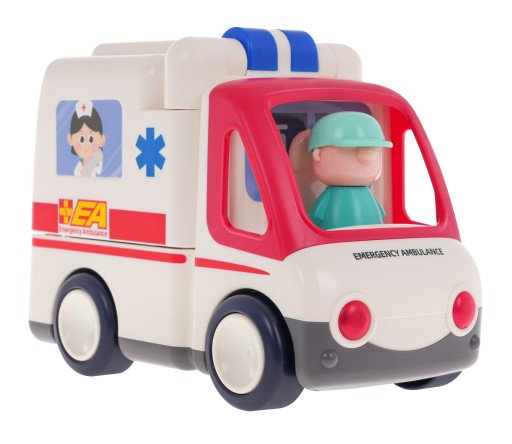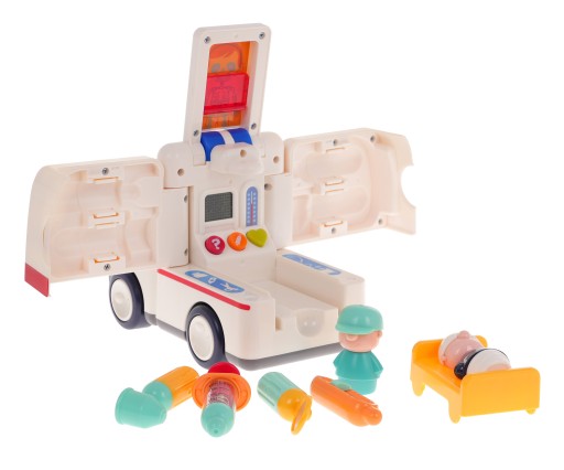 - Zestaw zawiera: karetkę, kierowcę, pacjenta, nosze, rentgen, monitor EKG, termometr, lusterko, strzykawkę