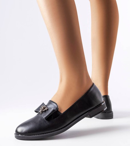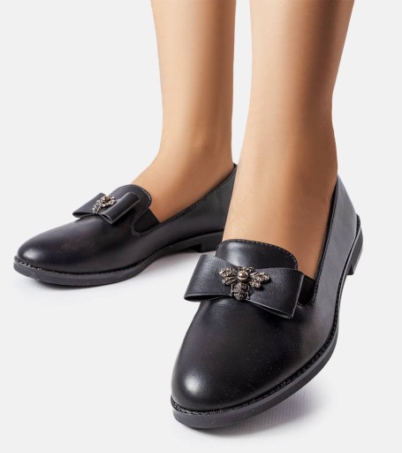 Czarne damskie mokasyny z kokardką GE81135-1
