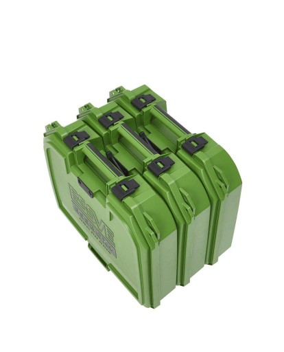 Skrzynia ESSSBOX+ Store-It - umożliwia inteligentne przechowywanie i transport produktów, narzędzi i gadżetów potrzebnych na budowie. ESSSBOX+ Store-It - zawiera dwie przegródki, które można umieścić w skrzyni, tworząc oddzielne przestrzenie dla lepszej organizacji. Zielona walizka ESSSBOX+ Organize-It służy jako pokrywka do ESSSBOX+ Store-It.