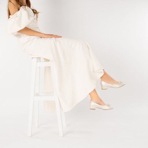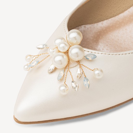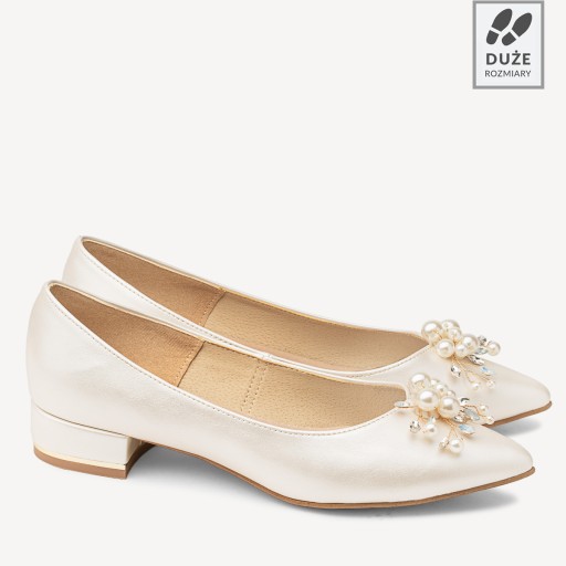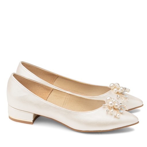 Ślubne perłowe balerinki z perłową ozdobą Gladys ivory
