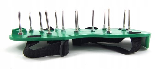 Nakładki na buty są bardzo solidnie wykonane. Obydwie nakładki posiadają aż 26 kolców - to bardzo ważne, ponieważ niewystarczająca ilość kolców nie zapewni dobrej aeracji. 26 kolców to wysoka efektowność pracy i skrócenie czasu wykonywania czynności. Montaż na buty trwa kilka sekund. Nakładki są uniwersalne - pasują na każdy rozmiar buta! Praca z nakładkami jest czystą przyjemnością. Znikomy wysiłek - jak podczas chodzenia po trawie - może wykonać każdy bez względu na płeć i wiek. Idealnie nadają się do domowych ogródków, działek i tym podobnych. Do zestawu dołączono specjalne paski do montażu na buta, które idealnie dopasowują się do każdego kształtu obuwia.