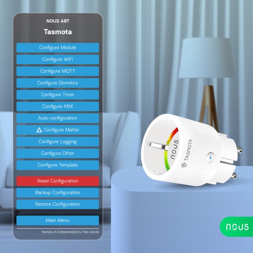 Inteligentne Gniazdko NOUS A8T wyposażone w ESP32 z wgranym oprogramowaniem Tasmota: Twój Osobisty Asystent Energii!